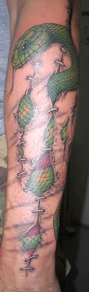Tatouage serpent 3d effet trompe l'oeil