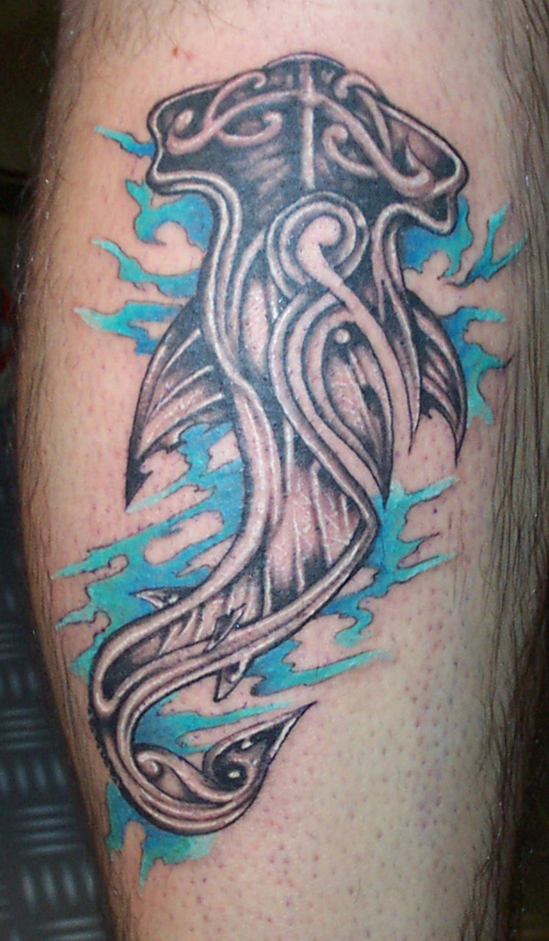 Tatouage de requin en couleur