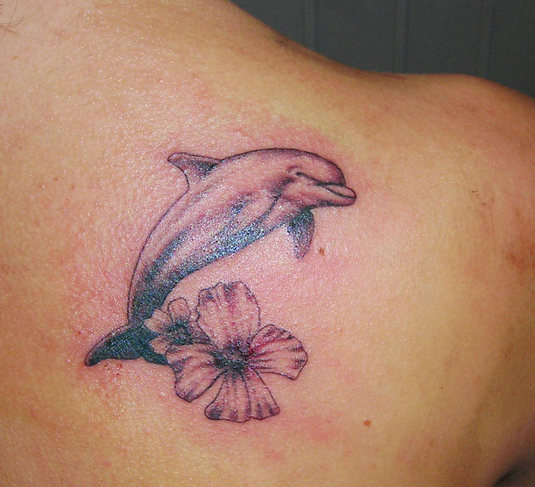 Tatouage petit dauphin sur l'épaule