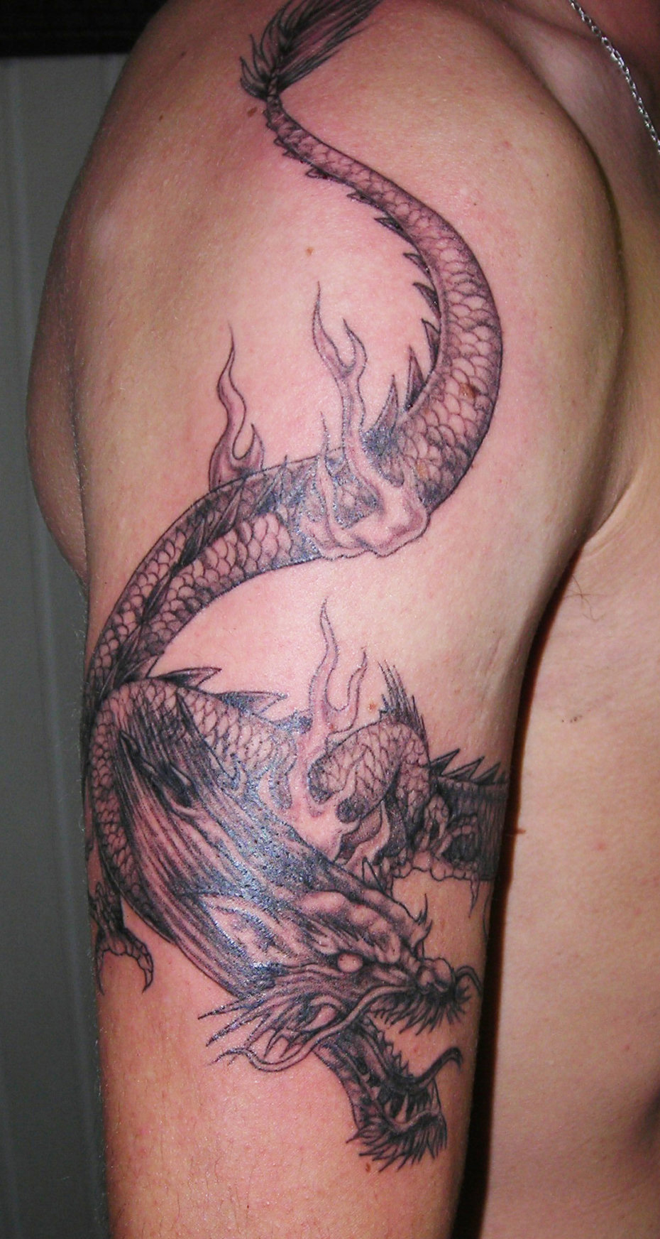 Tatouage dragon en haut du bras style réaliste