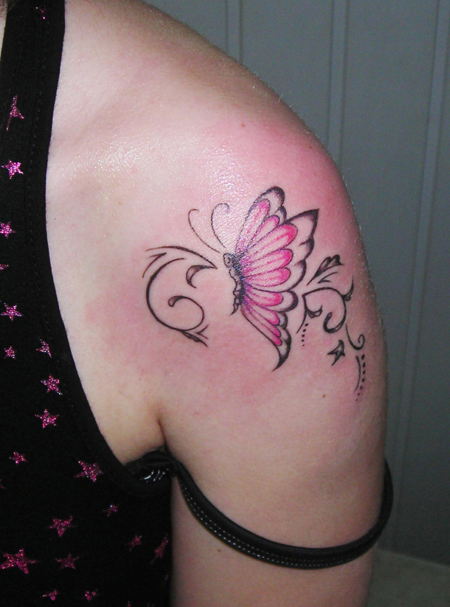 Tatouage papillon sur l'épaule