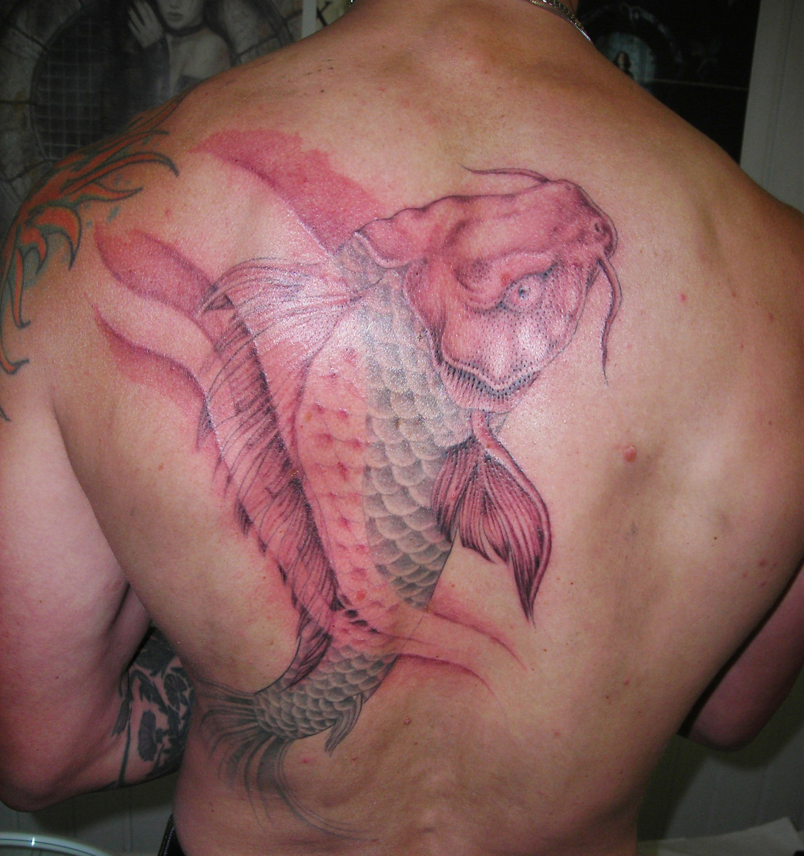 Tatouage poisson carpe dans le dos