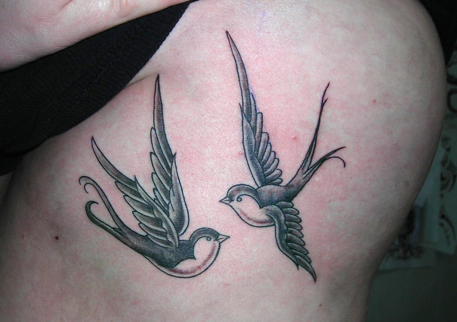 Tatouage hirondelles de style "Finework"